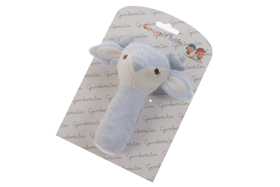 Tierno sonajero con cabeza de ciervo, ideal para acompañar a tu bebé en sus primeros juegos. Suaves y ligeros, están diseñados para estimular el sentido del oído y el tacto, favoreciendo la coordinación motora de manera segura y divertida._x000D_